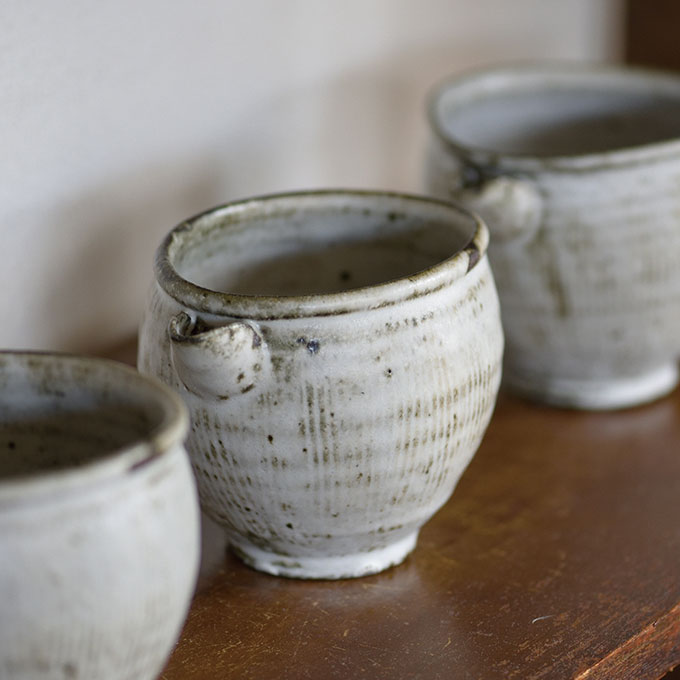 閑静な住宅地に溶け込んだ隠れ家のようなあ・でゅまんは、オーナーの田中さんが小野哲平さんの器に一目惚れしたのがきっかけで生まれたギャラリー。主に器が中心ですが、哲平さんの奥様である布作家の早川ユミさんの洋服や、梅原和香さんの裂き織りなど、10人ほどの個性派作家が顔を揃えます。