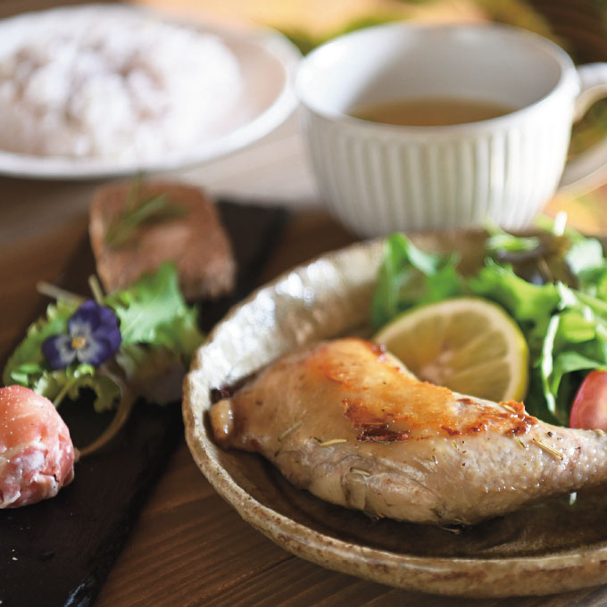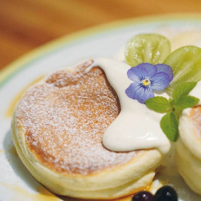 店主の村井幸子さんは大阪生まれの大阪育ち。祖父母の家を受け継ぎ、使っていない蔵をカフェに再生しました。ランチメニューは、ハーブやスパイスなど香りと共に楽しむ料理がラインナップ。注文を受けてから生地をつくって焼き上げる、ふわっふわのパンケーキも見逃せません。