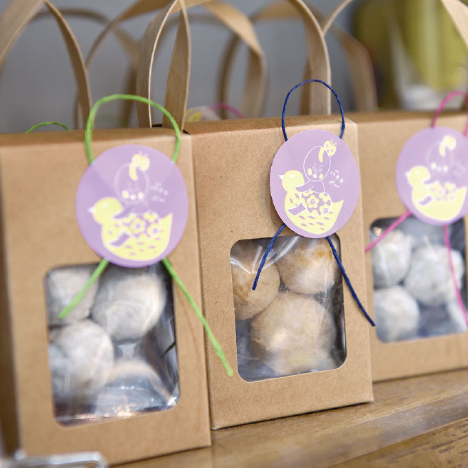一度聞いたら忘れられないユニークな名前のお店は、緑あふれるのどかな場所にあります。子どもの言葉をヒントに名付けたそうで、オーナーパティシエの今川ゆかりさんが、子育てを楽しみながら好きなお菓子づくりに励んでいます。