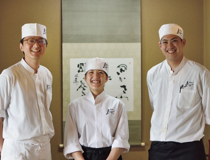 3代目の池田将訓(写真左)さんは大阪の辻学園調理・製菓専門学校を卒業後同校の講師となり、15年ほど前に帰郷。共に働く若手スタッフと料理人対象のコンクールにも積極的に参加し、数々の受賞歴を誇っています。