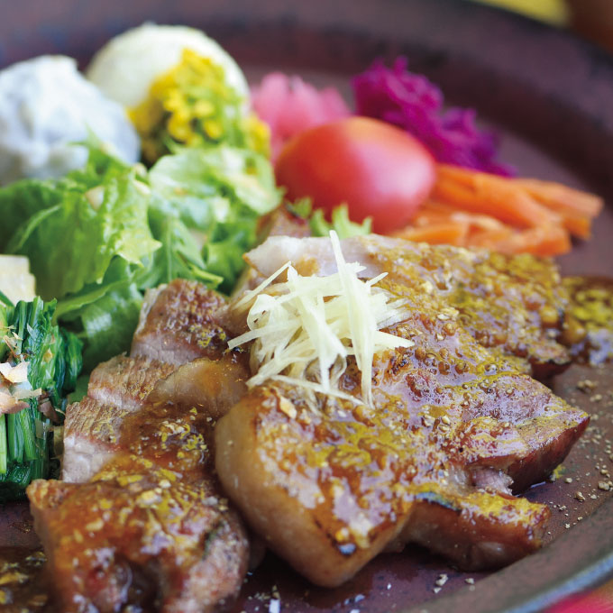 栽培方法をにこだわった島内の農家の野菜をはじめ、調味料に至るまで使用するものは可能な限り県内産で。旨味が閉じ込められた状態で焼き上がる、ローストビーフやハンバーグは垂涎ものです。