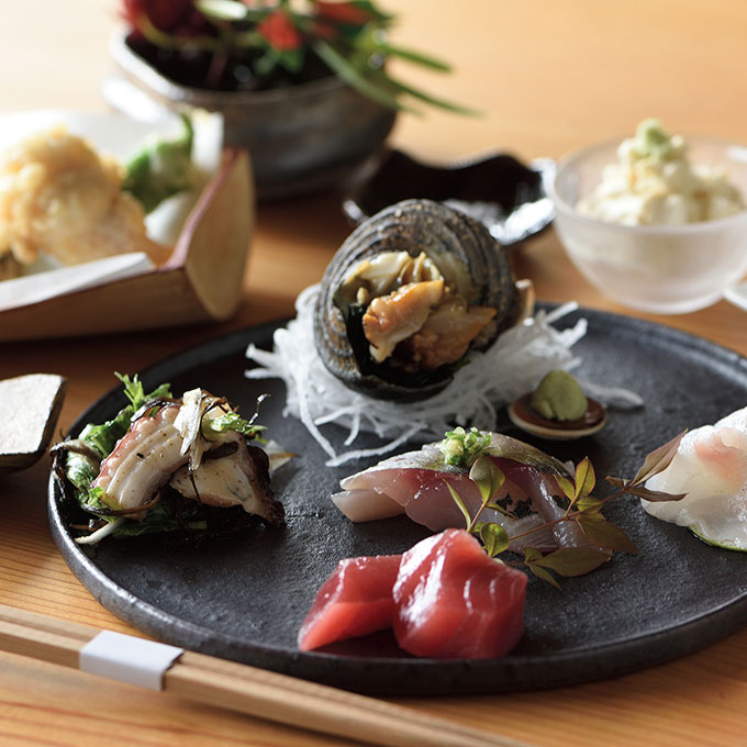 一人ひとりのお客様にきちんと向き合いたいとの想いから、食事は昼夜それぞれ一組ずつの完全予約制。前菜から供され、お寿司は握りたてを楽しめるよう、程良い間合いで一種類ずつ。瀬戸内の旬味をたっぷり2時間。幸せな余韻が残ります。