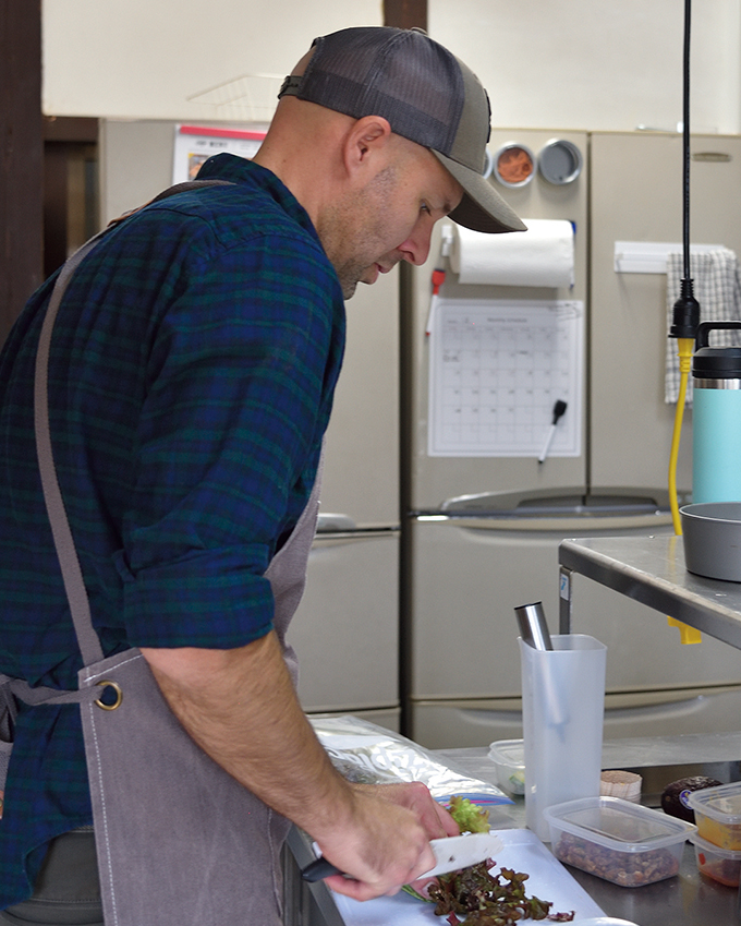 厨房では、アメリカ在住時に身に付けた品で「他では味わえない驚きと感動を持って帰ってもらいたい」と腕を振るっています。