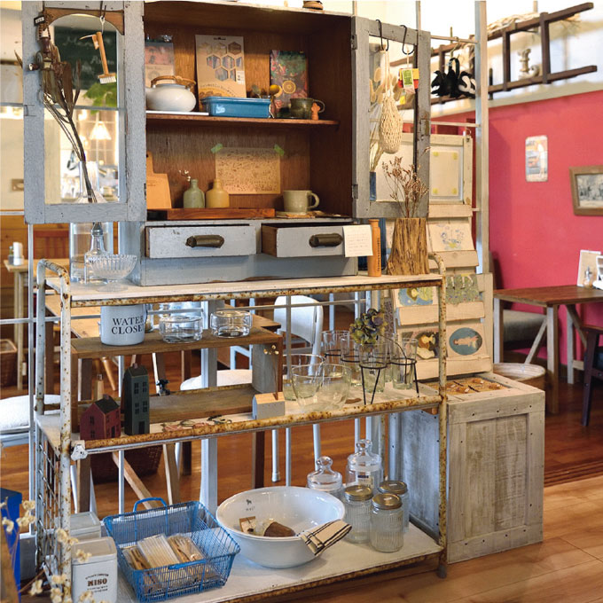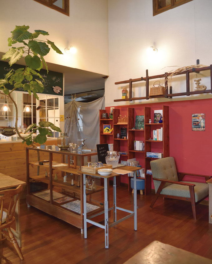 メニューを注文したら出来上がるまでの間にゆっくり作家モノをセレクトした雑貨を楽しみましょう。赤い壁が印象的な内装も素敵で、家具類は全て敏博さんが手がけたもの。コツコツ一から家族で創り上げたラピスラズリは、どこまでもあたたかくやさしさに溢れています。