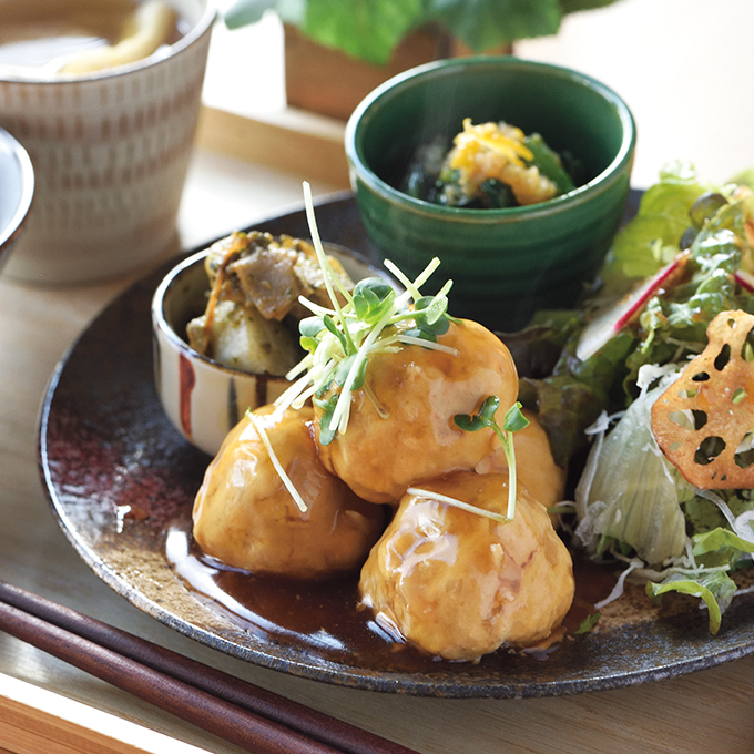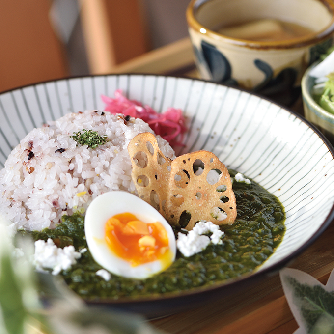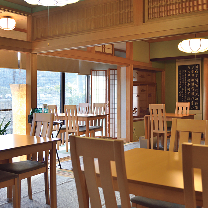 山陽と山陰を結ぶ国道187号線沿い。北河内郵便局の隣にある翠の風は、一見普通の民家のような佇まい。ランチでは、週替わりの定食とカレーの2種類を提供し、地域に恩を返す意味でも食材は可能な限り地元産を使用。丁寧に手づくりしています。