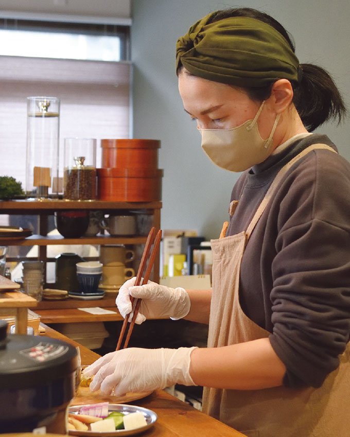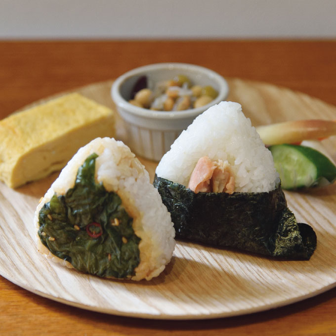 お好みのおにぎりに日替わりのおかずや自家製ぬた漬け、だし巻きたまごの「おかずセット」と組み合わせても◎。テイクアウトもできますが、イートインでお味噌汁といっしょにいかがでしょう。食後には自家焙煎したコーヒーも是非。月の最後の週にはカレーも提供しています。