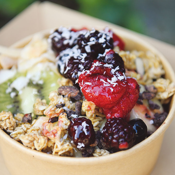 2025年10月にオープンしたpark.は「歴史ある公園で健やかな時間を」をテーマに、ヘルシーフード&ドリンクを提供しています。アサイーボウルは高品質なアサイーを使用してオリジナルのペーストを作り、自家製グラノーラやキウイをトッピング。仕上げのハチミツで見た目も華やかです。ブリトーや美腸カレー、ヴィーガンドーナツなどもおすすめ。