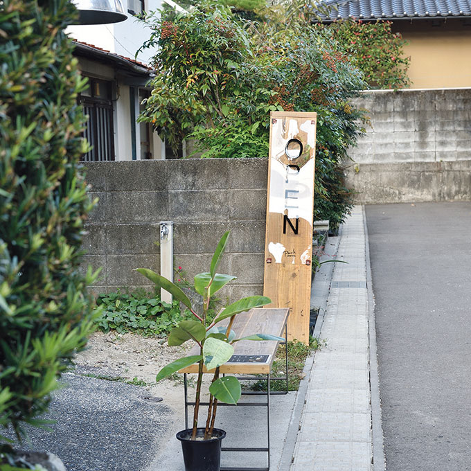 吉香公園にほど近い、静かな住宅地に佇む隠れ家的な空間。この看板が目印です。テイクアウトし、公園を眺めながら味わうコーヒーは格別です。