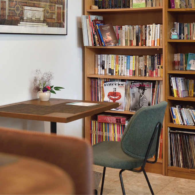 2024年11月に移転オープンした際、本とカフェ「リブレ」を併設。棚には様々なジャンルの本や雑誌などが並び、ゆったりとした喫茶時間を過ごすことができます。お昼時にはランチも楽しめますよ。