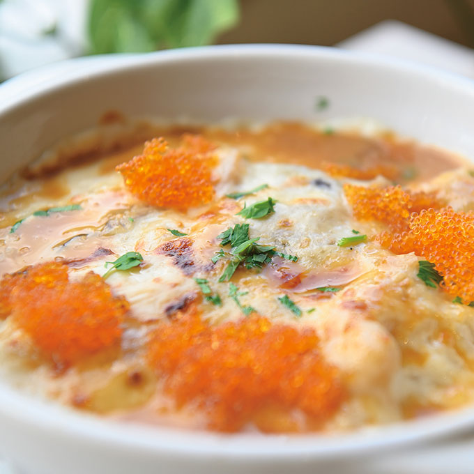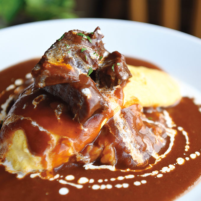 以前浜崎地区にあった「海宴」が店名を新たに移転オープン。手間を惜しまない情熱的な料理はすでに広く定着しており、名物の牛タンシチューのオムライスを筆頭に、メニューは海宴時代のものをほぼ継続しています。